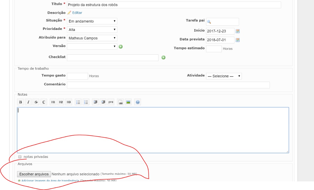 Deixar isso bem claro é importante, para que os outros membros da Roboime possam tentar ajudar. Por fim, para finalizar basta selecionar o ícone de enviar.